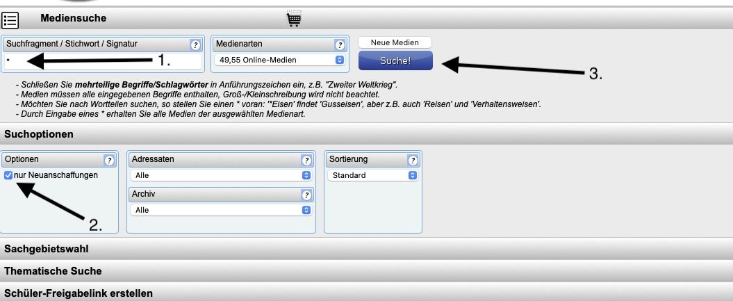 - Klicken Sie die Suchoption "nur Neuanschaffungen an"